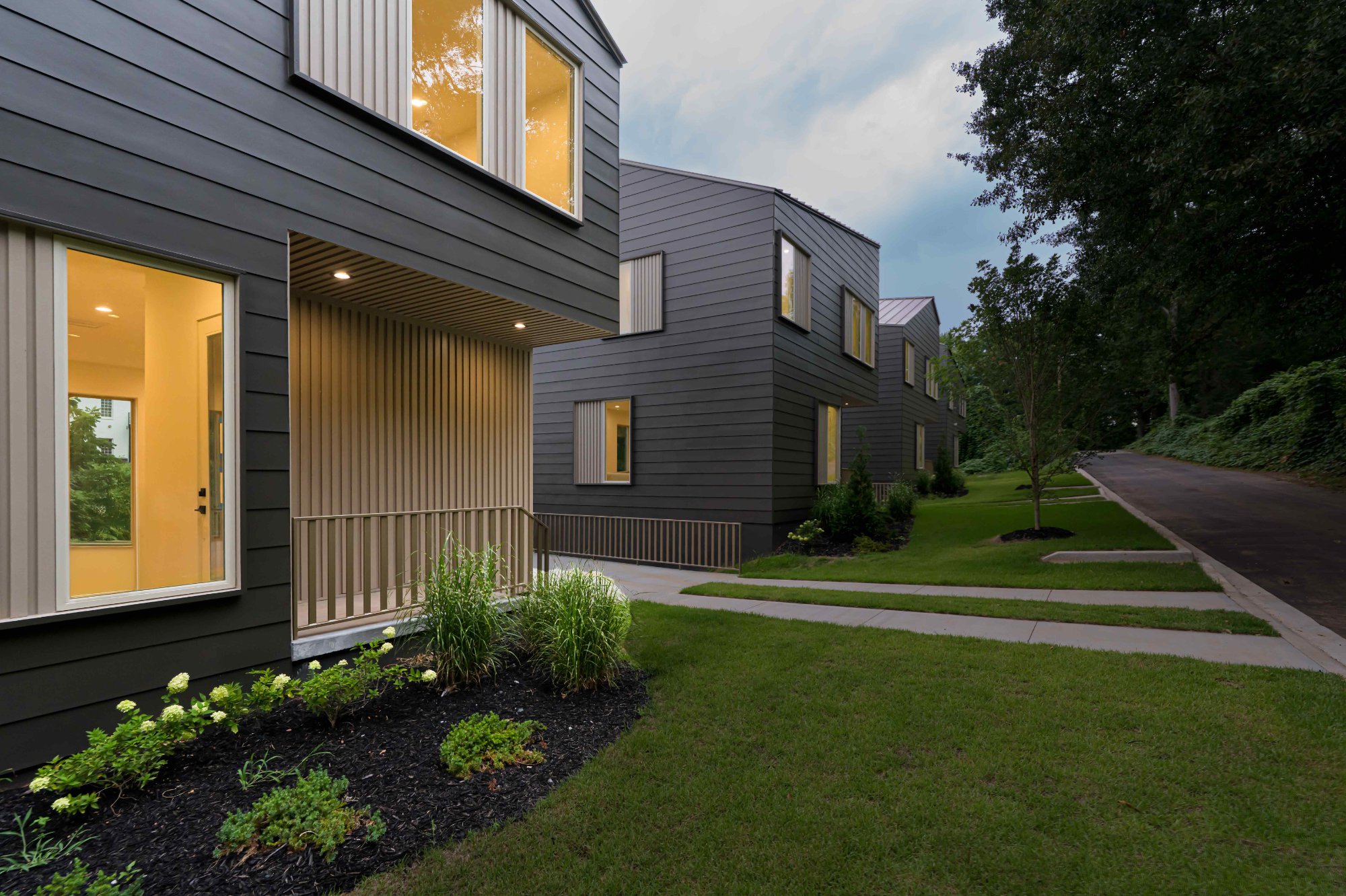 Mount Zion is a small infill development in Greenville's Overbrook neighborhood on a steep 0.52-acre site between a quiet residential street and Richland Creek. As the builder, I managed the subdivision of the property into four lots and coordinated the development strategy to work with the site's challenging topography while maintaining construction efficiency.