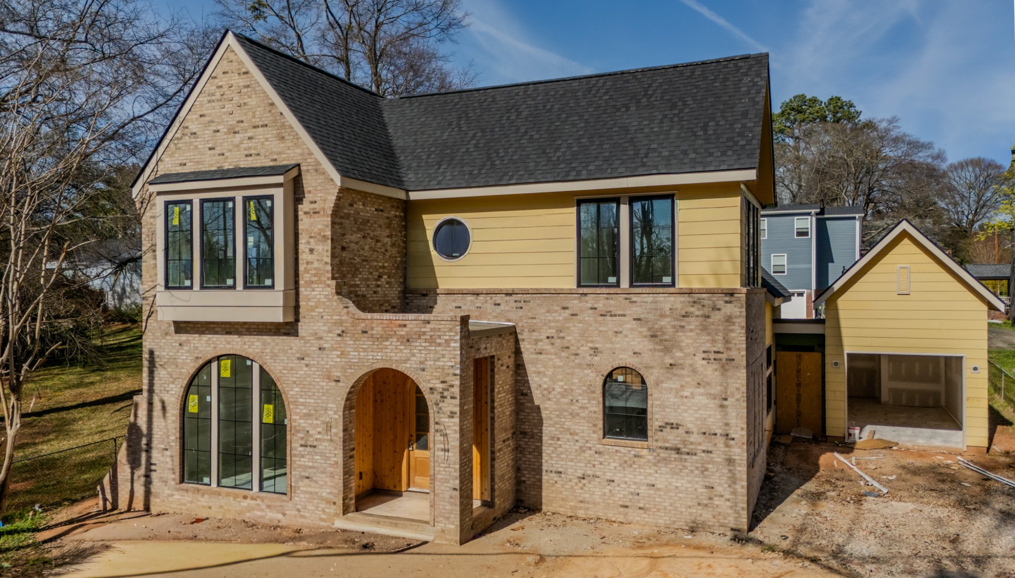 Originally conceived as a speculative build, the home was presold during construction, demonstrating strong demand for well-designed infill housing in established Greenville neighborhoods. The project features a mix of traditional masonry and modern detailing, arched openings, and carefully proportioned windows that bring natural light into the interior while reinforcing a timeless exterior presence.